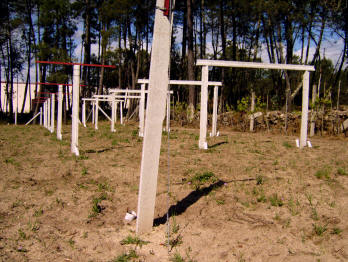 terminada y alambrada; al pie de cada columna se pueden observar los recipientes