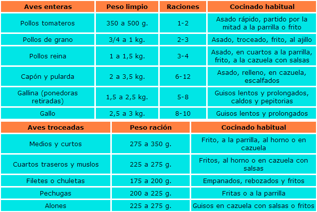COCINA Y GASTRONOMÍA: Las carnes: Aves - 1ª parte