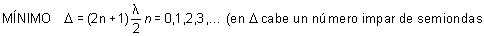 En este caso el diapasón equivale a dos focos, al generar ondas idénticas que se propagan por caminos diferentes. Si el primer mínimo se consigue cuando es igual a 18 cm, aplicando la condición de mínimo se tendrá: